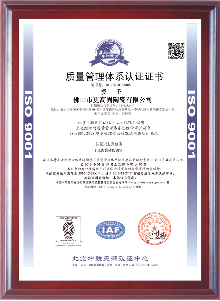質(zhì)量管理體系認(rèn)證證書(shū)1