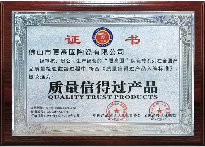 質(zhì)量信得過(guò)產(chǎn)品銀色證書(shū)
