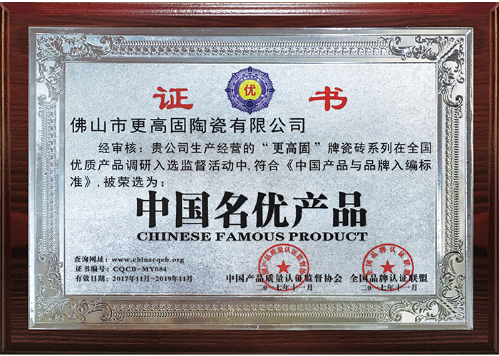 中國(guó)名優(yōu)產(chǎn)品銀色證書(shū)
